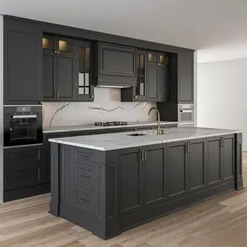 Shaker Style Modular Kitchen Cabinets MDF Carcase Glass Door Marble Laminate Countertop Faucet Hinge Drawer Basket Accessories